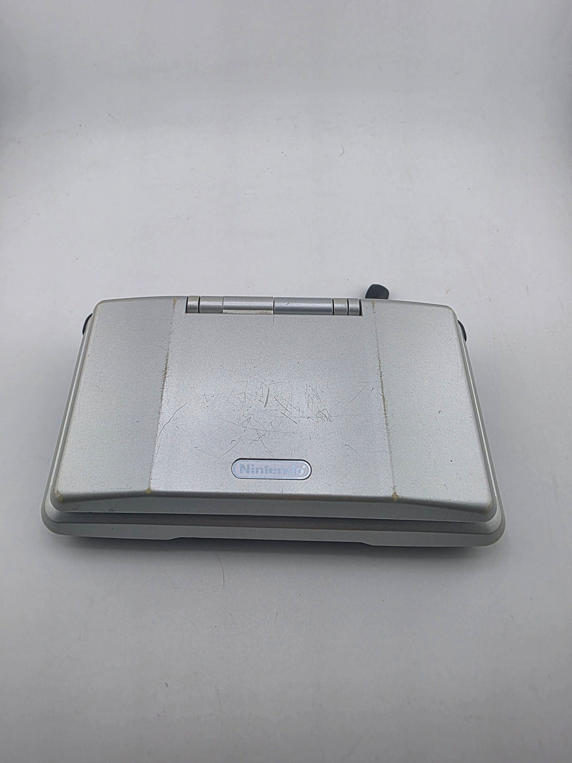 Silver Nintendo DS console. This portable console allows you to play DS games and Gameboy Advance games. Come with Charger.